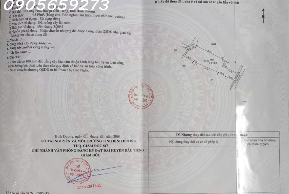 BÁN GẤP 5.000m2 tại KCN DẦU TIẾNG 1 – 600K/m2 – 2.8tỷ