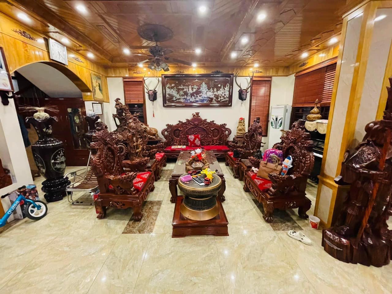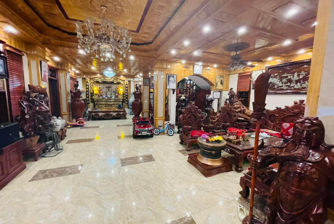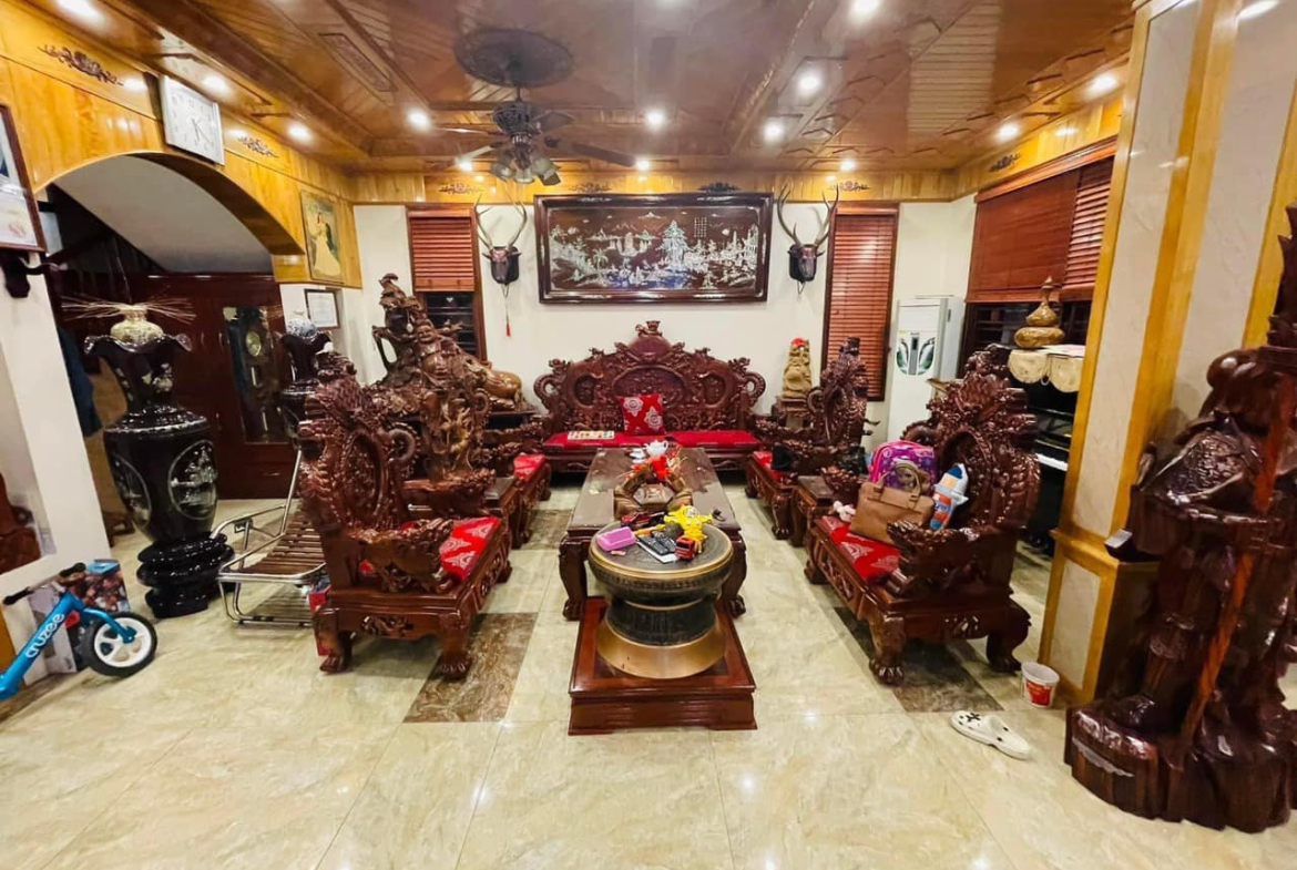 Nhà hoàn thiện được vài năm, cực đẳng cấp nội thất gồ Hương Đỏ, Pơmu, Gỗ Lim. Chủ để lại 90% nội thất.