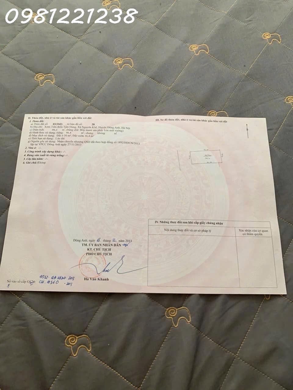 ****Nóng bỏng tay**** Tôi đang cần tiền nên bán đất Tiên Hùng Nguyên Khê Đông Anh