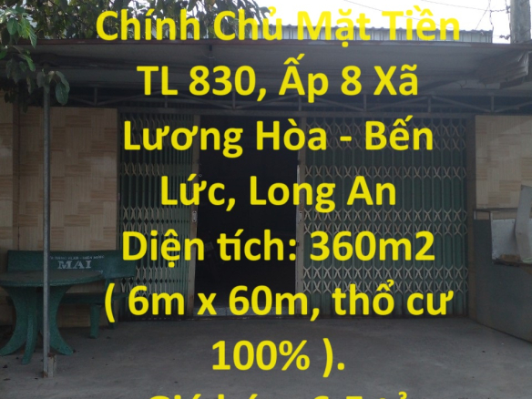 BÁN GẤP Lô Đất Chính Chủ Mặt Tiền TL 830, Ấp 8 Xã Lương Hòa – Bến Lức, Long An