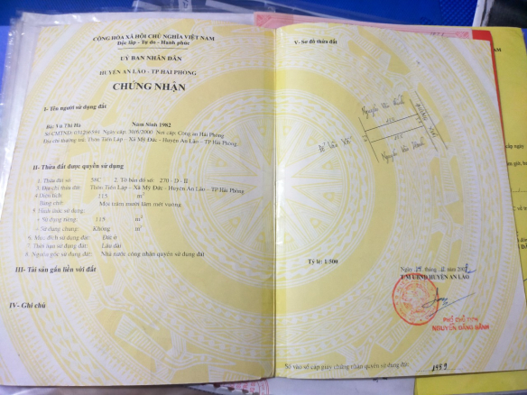 Bán gấp lô đất DT 115 M ngang 5 Mỹ Đức An Lão Hải Phòng