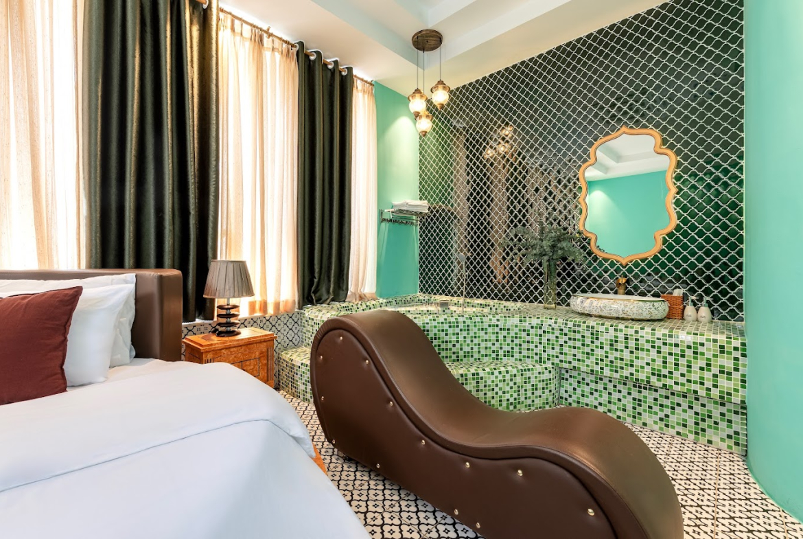 – **Tầng lửng:** 2 phòng thư giãn, khu xông hơi – massage, quầy bar.