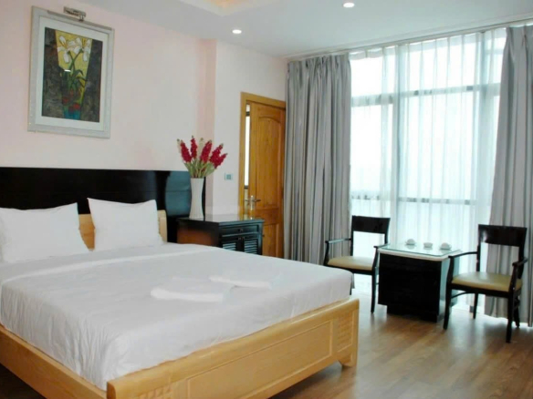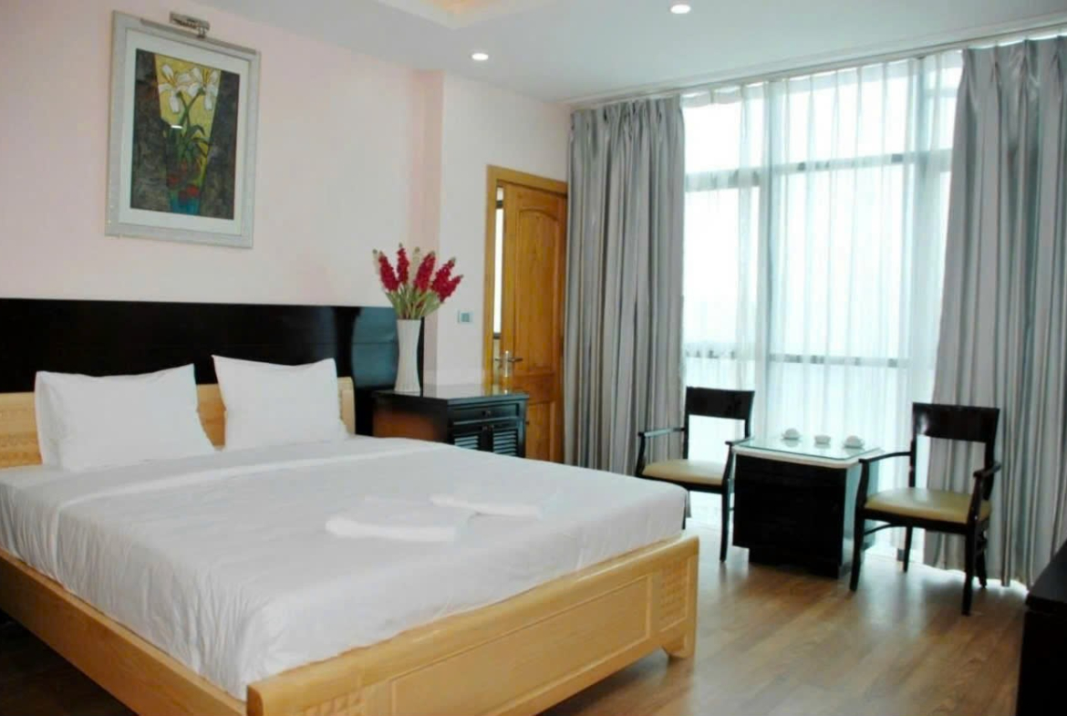 🔹 Tòa nhà bề thế, 1 tầng hầm + 7 tầng nổi, thiết kế hiện đại, đầy đủ tiện nghi, thang máy, bể bơi, sân vườn thoáng mát, PCCC đầy đủ