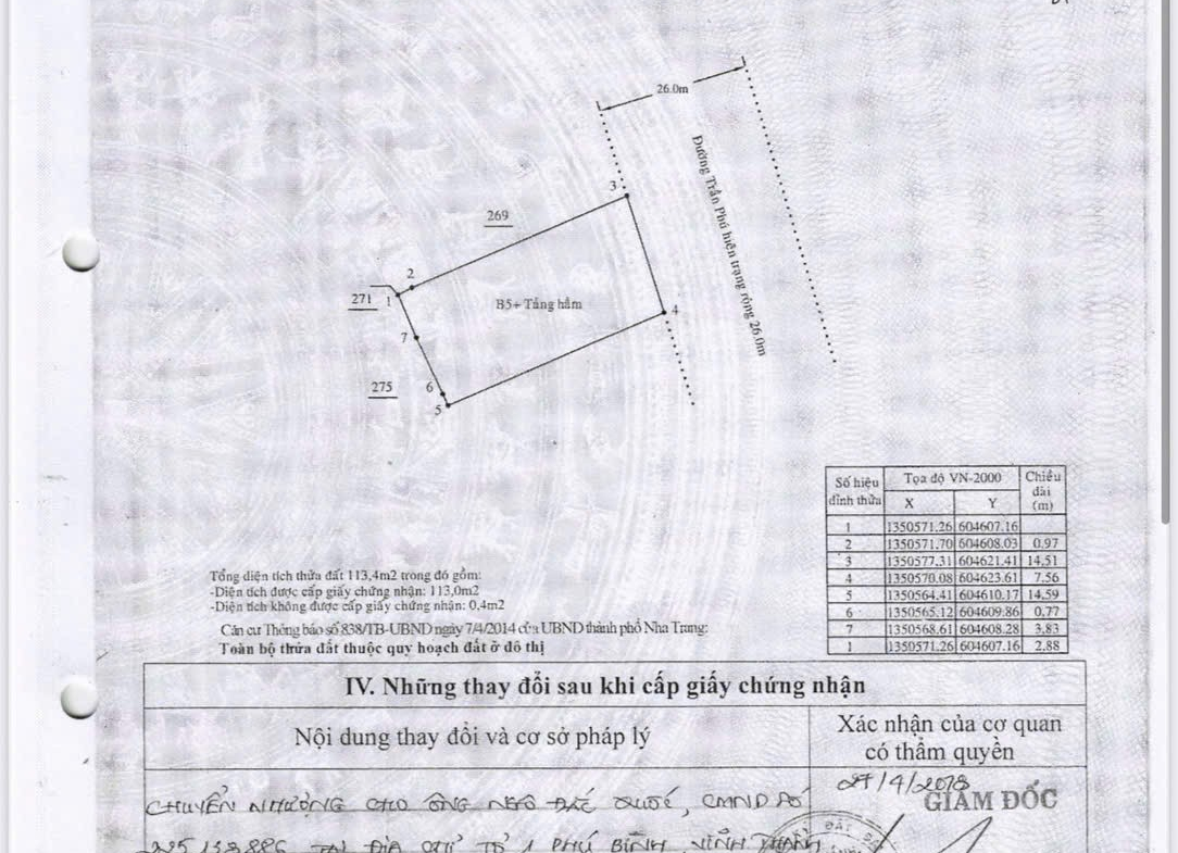 Diện tích: 113m², sàn 522m², ngang gần 8m