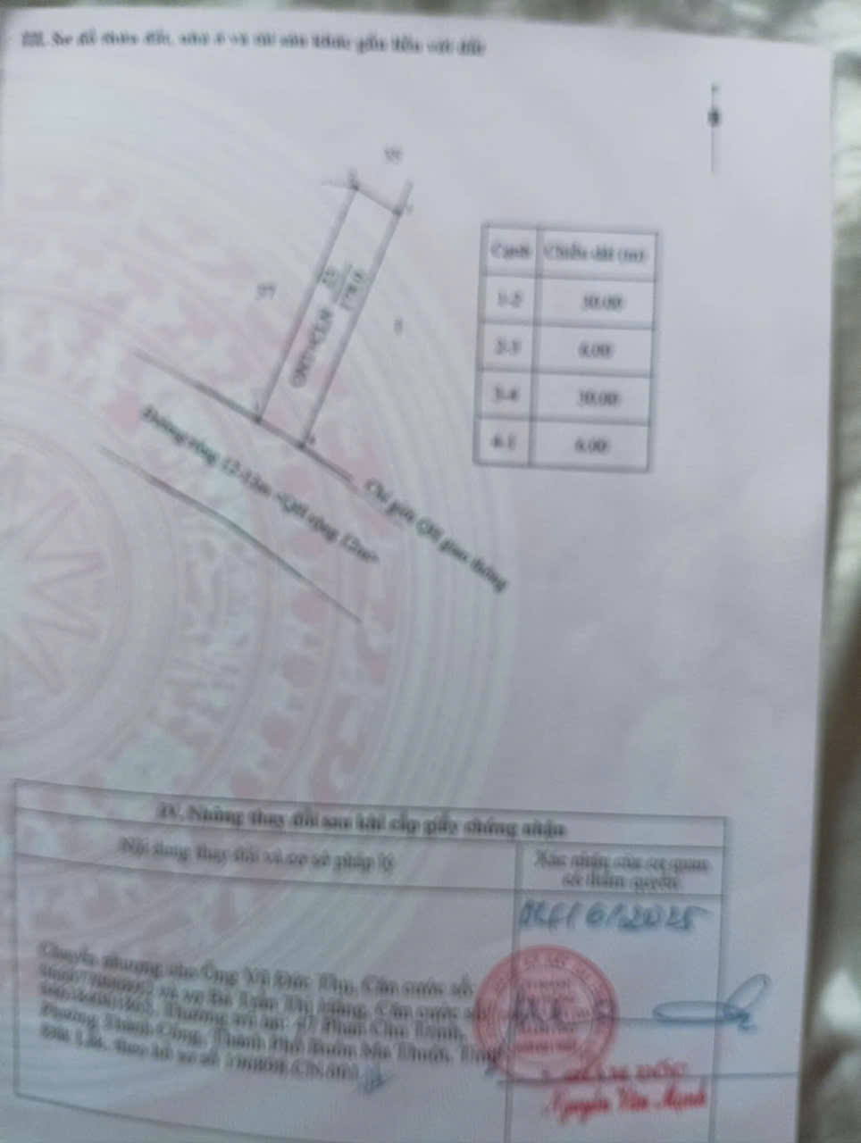 Thửa 1: diện tích trên sổ 180m² (thửa 6 & 30). Diện tích thực tế sử dụng khoảng 210m²