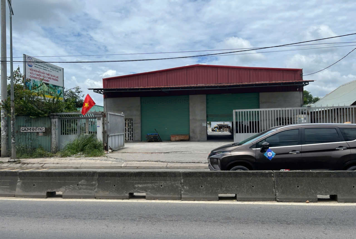 Hiện trạng: Kho xưởng xây dựng sẵn gần 500m², phần còn lại là nền bê tông – Sân trước sau rộng, phù hợp mở rộng sản xuất