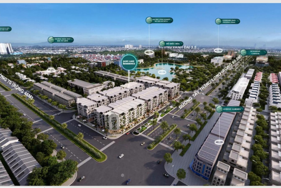 Cần bán Biệt, Liền kề tại dự án Jade Lake mặt đường Đai Lộ Tây Thăng Long (đường Hoàng Quốc Việt kéo dài), phía trên với dự án Vinhomes Đan Phượng, Phường Tây Tựu, Bắc Từ Liêm, Hà Nội.