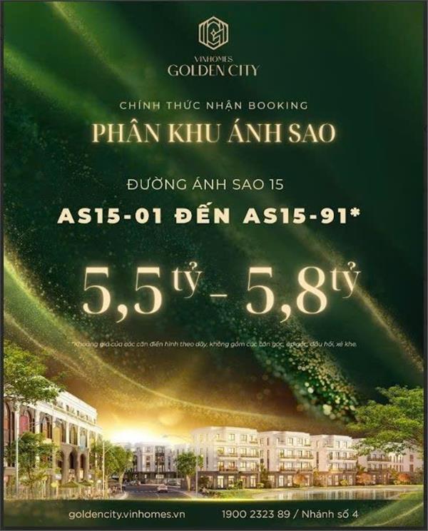 🔔 CHÍNH THỨC NHẬN BOOKING phân khu Ánh Sao – Vinhomes Golden City, tọa lạc tại đường Ánh Sao 15, với các lô từ AS15-01 đến AS15-91.