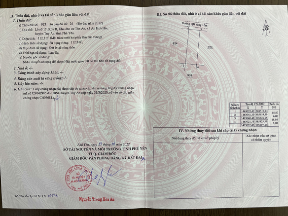 đ/c: Xã An Hoà, Tuy An, Phú Yên