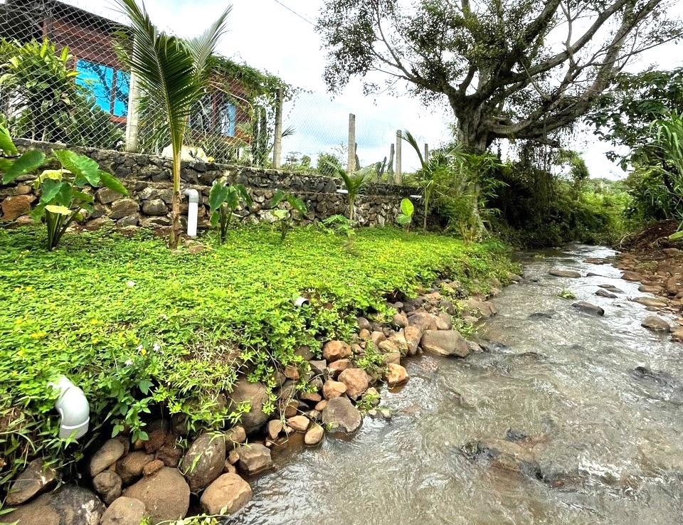Đường xe ô tô chạy tới đất view sông bé kế bên có suối nhỏ chảy ngang.