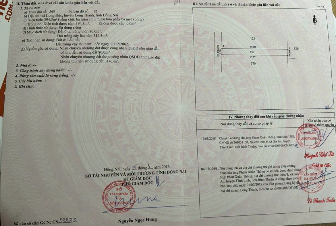 BÁN LÔ ĐẤT 394m² CÓ SỔ ĐỎ – ĐỐI DIỆN KCN LONG ĐỨC, LONG THÀNH, ĐỒNG NAI