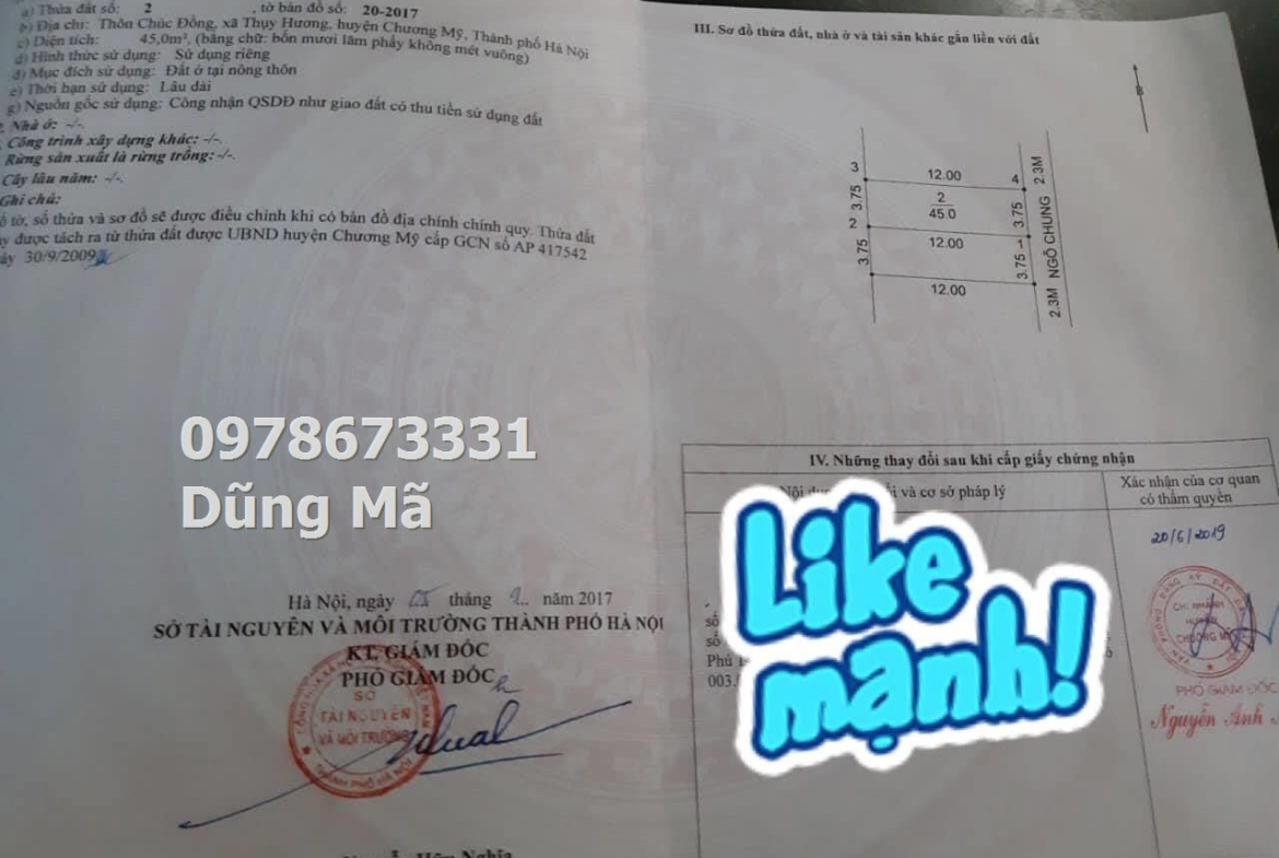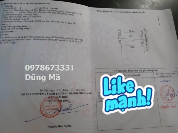 BÁN LÔ ĐẤT 47M TẠI CHÚC ĐỒNG-THỤY HƯƠNG-CHƯƠNG MỸ GIÁ 1TY750