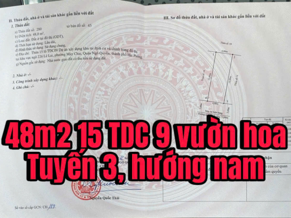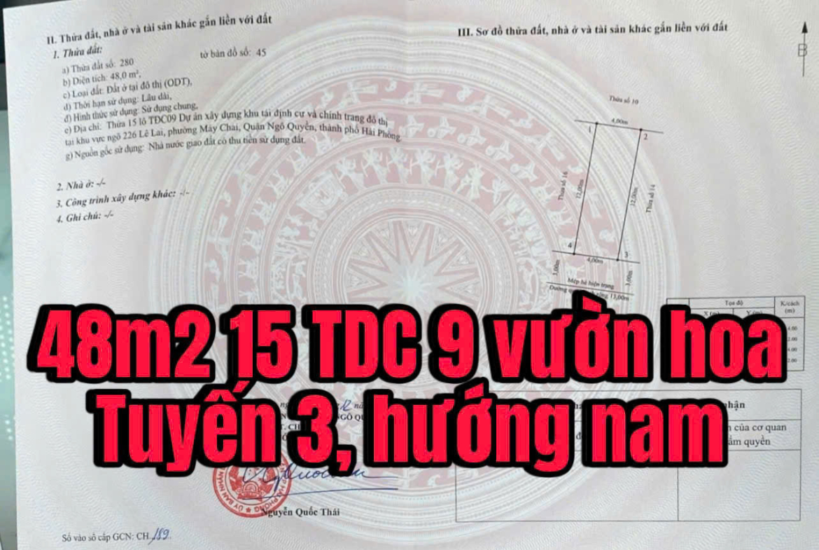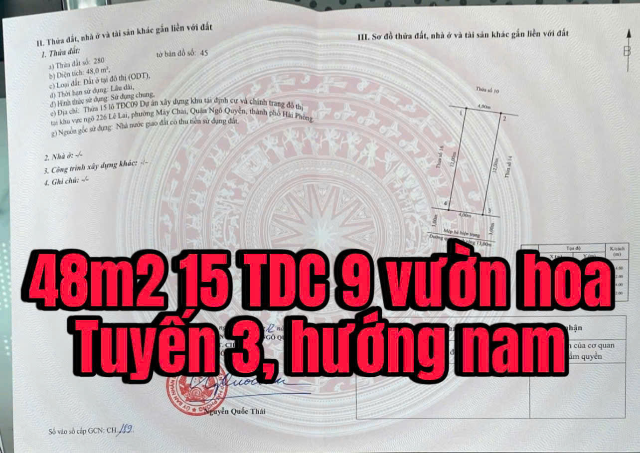 Bán Lô Đất 48m² Đối Diện Công Viên Tuyến 3 – Tái Định Cư 226 Lê Lai, Hải Phòng