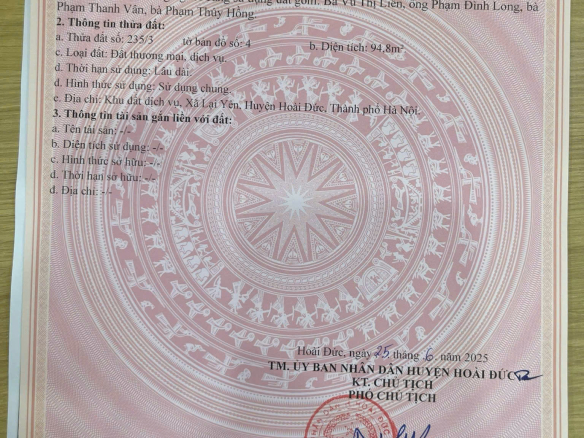 Bán lô đất 94,8m² SIÊU ĐẸP, đã có sẵn nhà cấp 4 mới xây,oto đỗ cửa tại Lại Yên, Hoài Đức