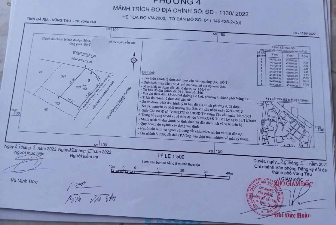 Bán lô đất Biệt thự căn góc 2 mặt tiền đường nội bộ đường Lê Hồng Phong P. Vũng Tàu.