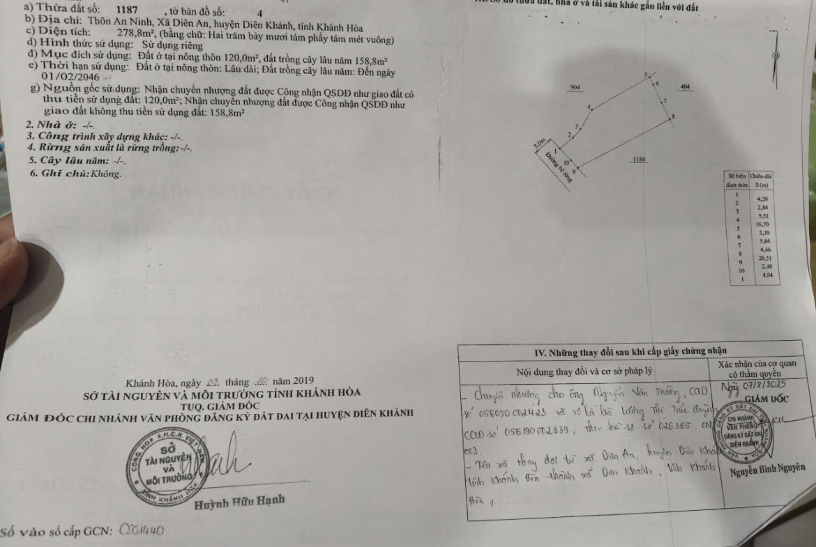 Diện tích: 279m2, có 120m2 thổ cư