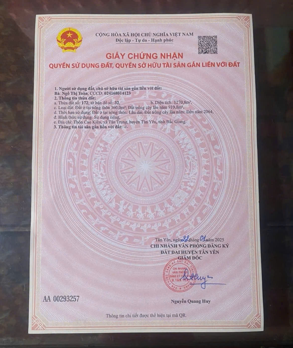 – Đất ở: 360 m² (đã lên thổ cư)