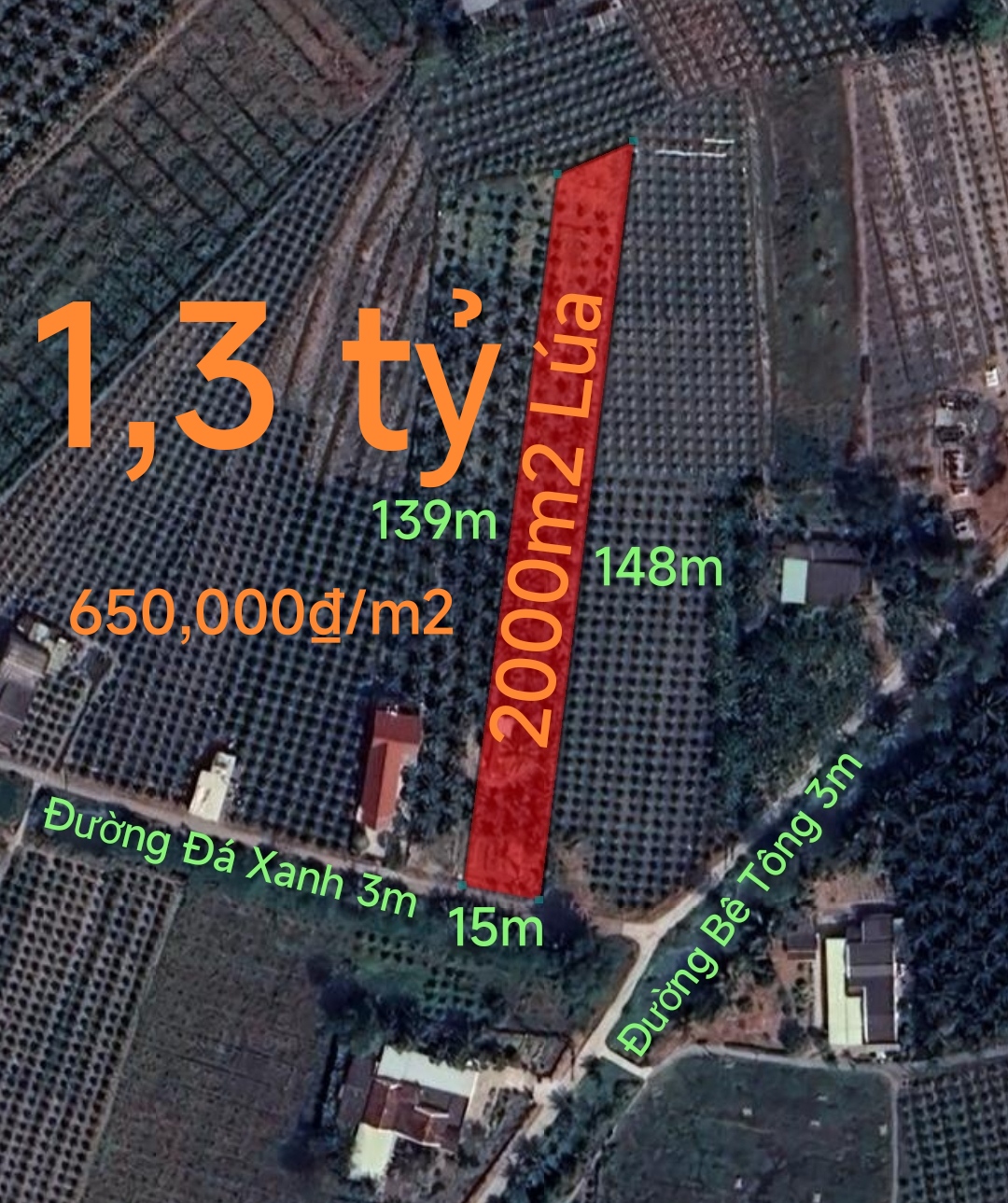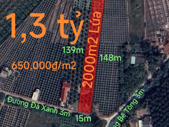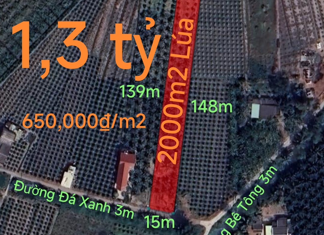 Bán lô đất lúa chuyển thổ làm nhà vườn giá 1,3 tỷ
