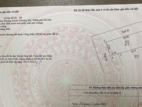 BÁN LÔ ĐẤT 850 THỤY HƯƠNG-CHUƠNG MỸ-HÀ NỘI