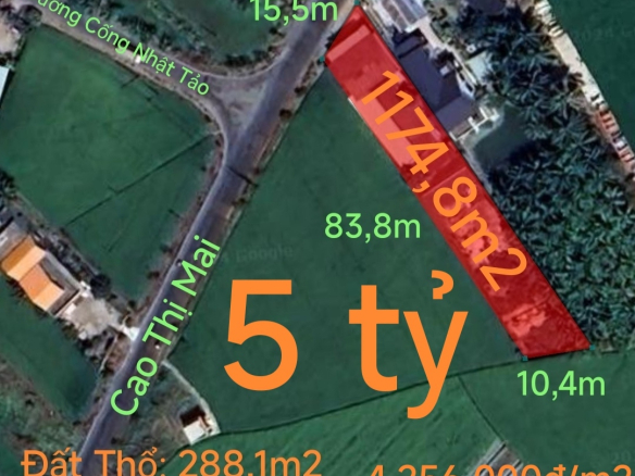 Bán lô đất thổ lúa mặt tiền Cao Thị Mai giá 5 tỷ