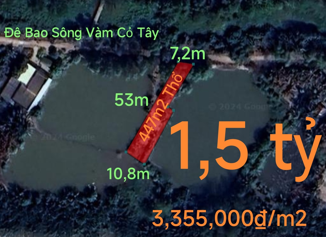 Bán lô đất thổ phân lô mặt tiền đê bao giá 1,5 tỷ