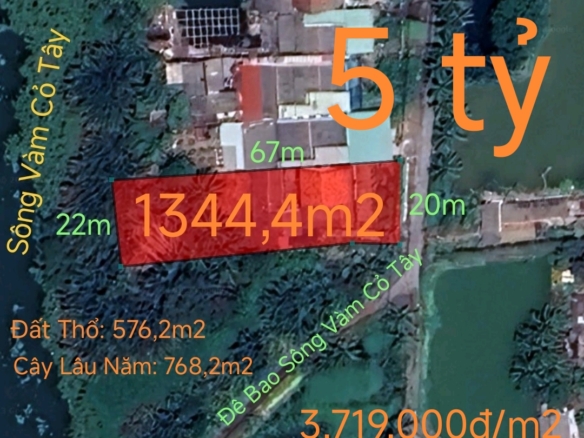 Bán lô đất thổ vườn có nhà mặt tiền đê bao giá 5 tỷ