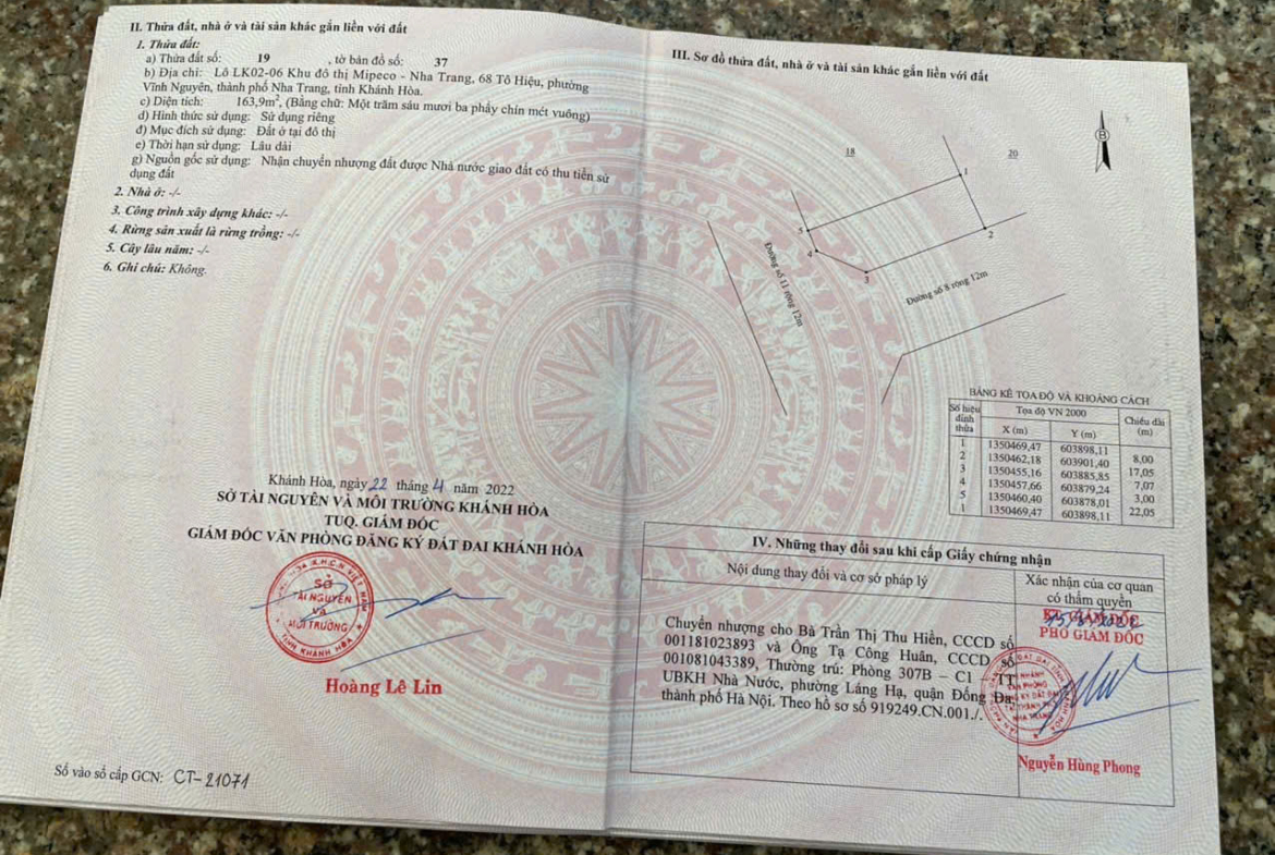 Bán Lô góc KĐT Mipeco – Vĩnh Nguyên gần biển Diện tích : 163.9m2 giá bán 13.5 tỷ ( thương lượng ) lh e