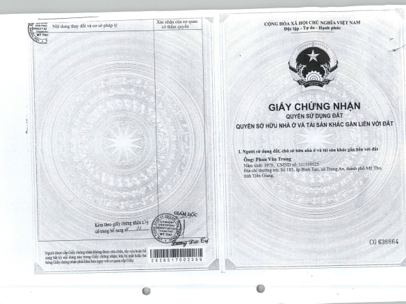 CHÍNH CHỦ BÁN NHÀ 2 MT SỔ HỒNG RIÊNG GIÁ RẺ TRUNG TÂM XÃ TRUNG AN-TP.MỸ THO-TIỀN GIANG