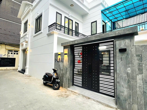 Nhà được thiết kế theo phong cánh hiện đại sang trọng! Sân cổng rộng thoáng mát và nhiều cây xanh!