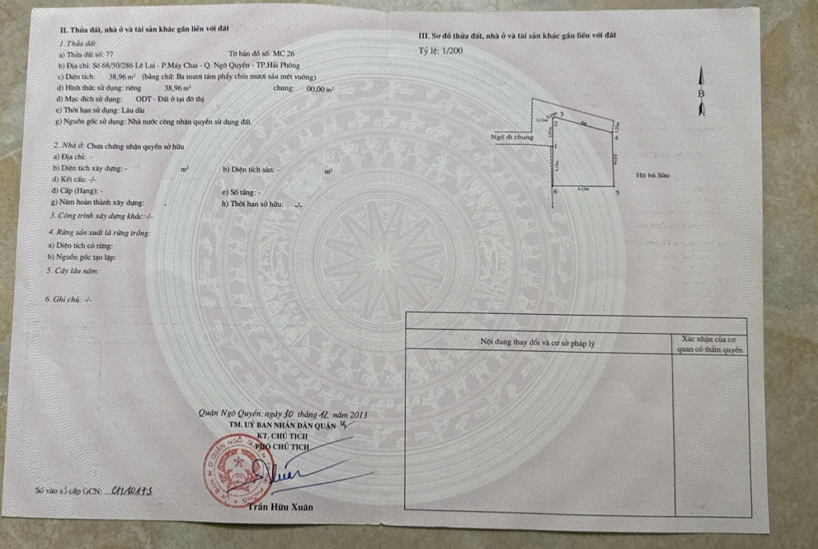 Ngõ thông thoáng, kết nối nhiều hướng, gần khu tái định cư Lê Lai và ngay chân cầu Hoàng Gia, thuận tiện di chuyển sang Vũ Yên, phù hợp để ở hoặc cho thuê.