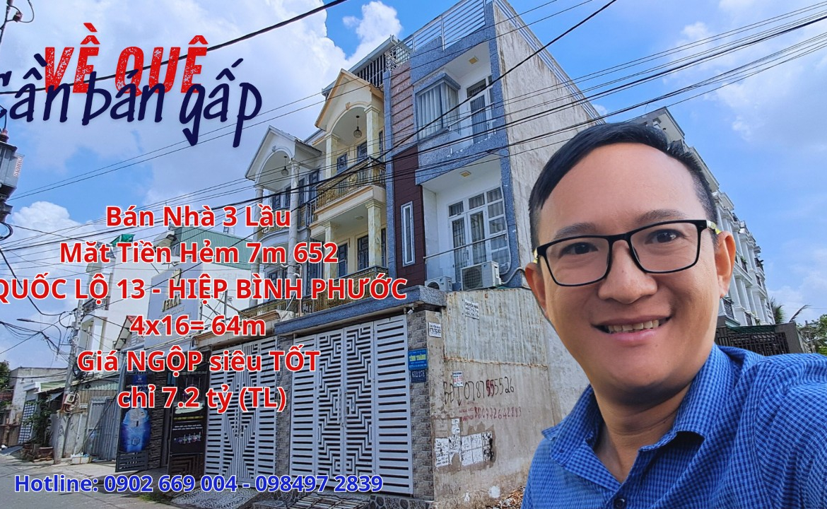 Bán Nhà 3 Lầu Mặt Tiền Hẻm 652 Quốc Lộ 13 Hiệp Bình Phước Thành Phố Thủ Đức