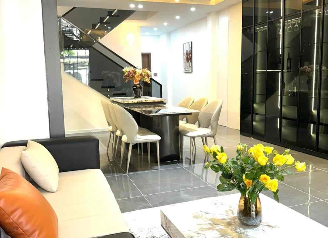 Diện tích đất 100m2, hướng Đông Bắc, nhà 3 tầng hiện đại.