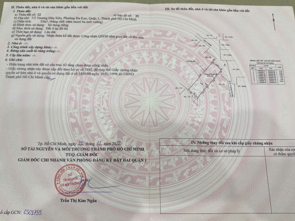 Bán nhà 7/2-7/3 Trương Hán Siêu, Phường Da Kao, Quận 1.