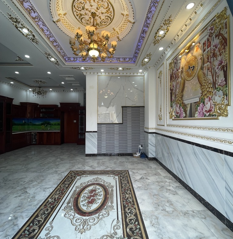 Kết Cấu : 4 Tầng . Trước nhà sân và gara oto bên cạnh , Phòng khách , bếp . 4 PN , 5 WC , Phòng Thờ , Ban công , sân thượng mái che.