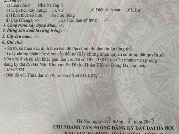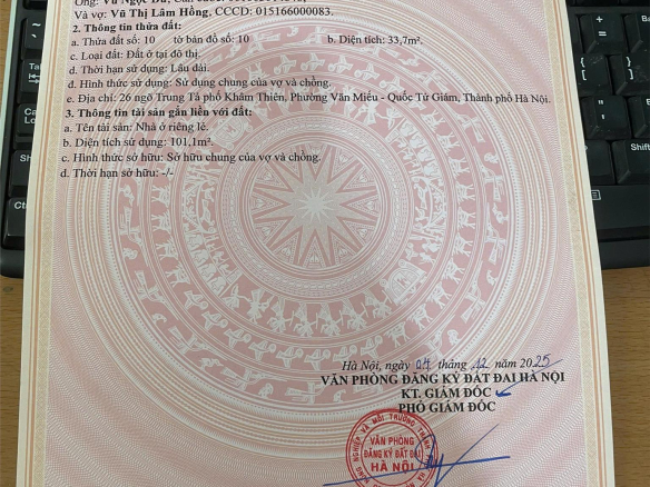 Bán nhà địa chỉ: Số 35, mặt ngõ Trung Tả, Phố Khâm Thiên, Phường Thổ Quan, Đống Đa, Hà Nội.