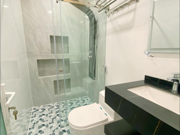 + Kết cấu: 1 trệt, 2 lầu, đúc kiên cố chắc chắn, gồm: 6PN, phòng khách, bếp, tặng hết nội thất xịn sò.