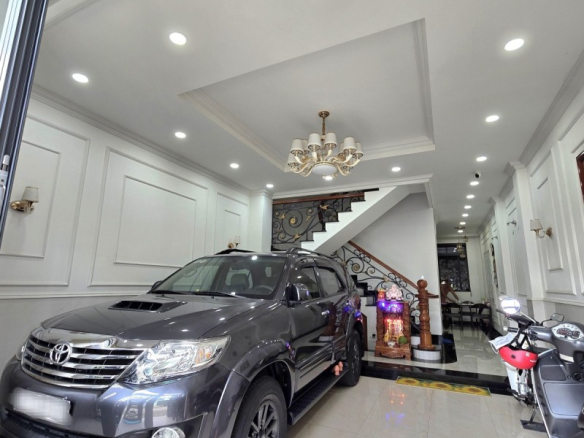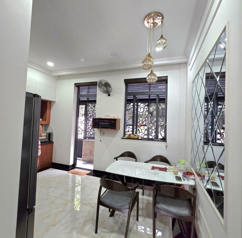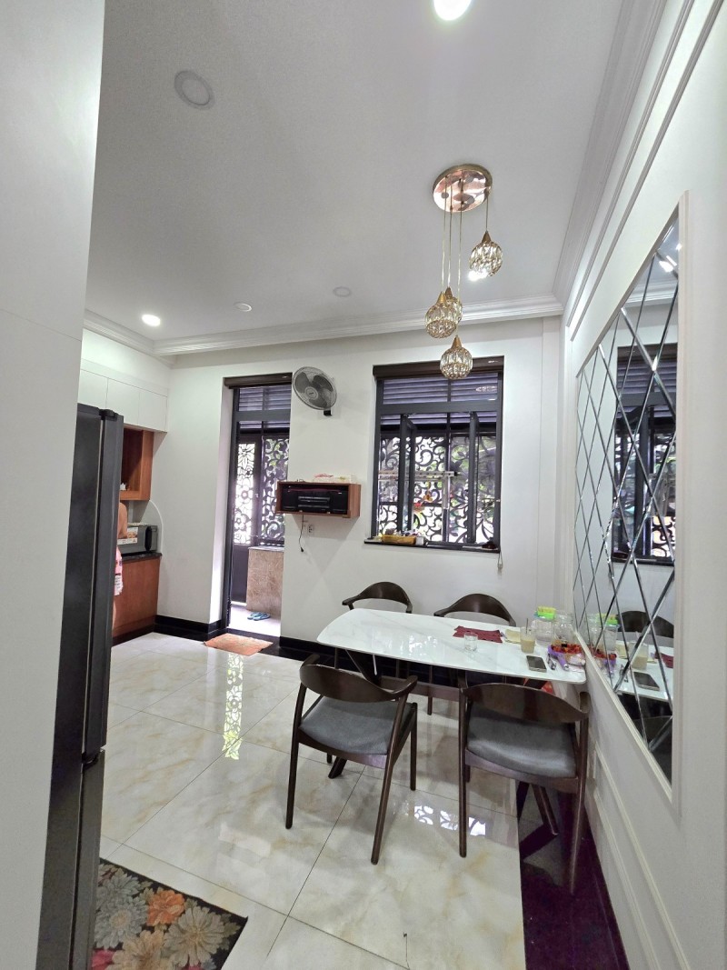 Căn nhà có diện tích 72m2, chiều dài 15m, chiều rộng 4.8m, với thiết kế hiện đại 4 tầng bao gồm, Gara xe, Phòng khách, Bếp, Sân thượng, 4 phòng ngủ cùng 4 nhà vệ sinh. Hiện trạng căn nhà còn mới, rất tốt, sẵn sàng để bạn có thể đưa vào sử dụng ngay.