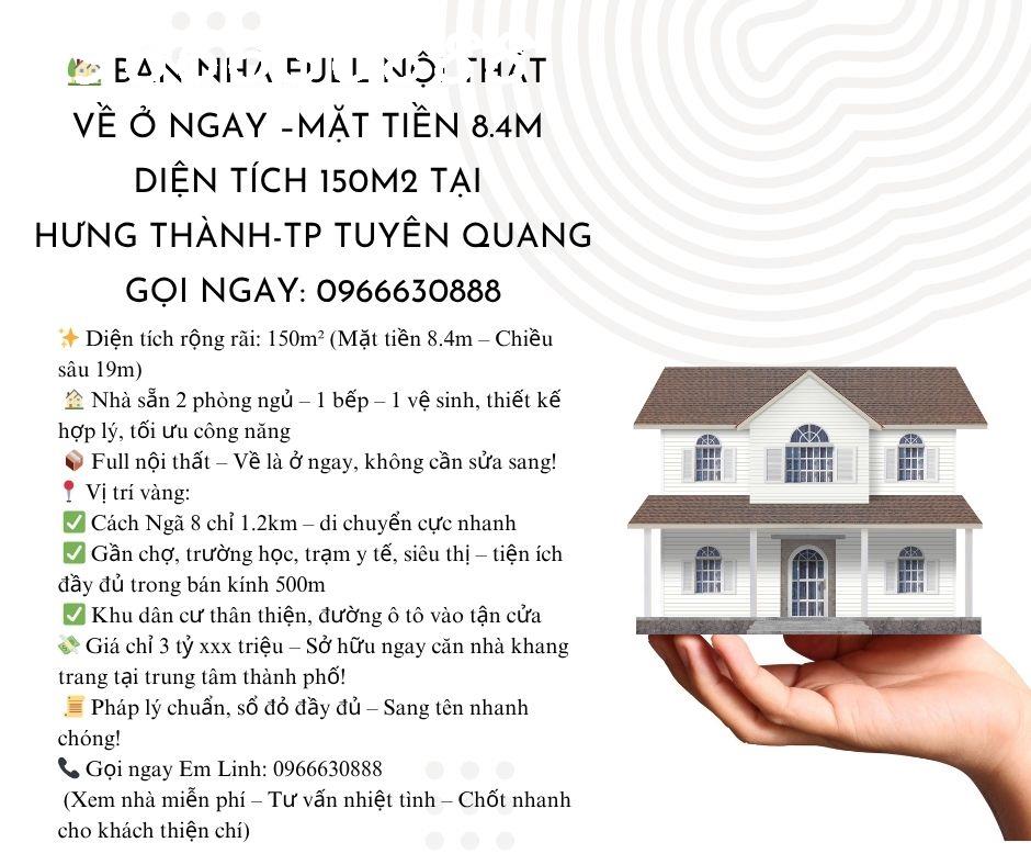 Bán nhà full nội thất về ở ngay mặt tiền 8.4m diện tích 150m2 tại Hưng Thành TP Tuyên Quang