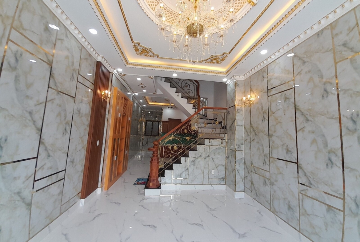 – Nhà mới tinh ở ngay gồm 1 trệt 2 lầu, sân thượng, 4PN, 4WC, phòng thờ, sân xe 7 chổ, chủ tặng hết nội thất