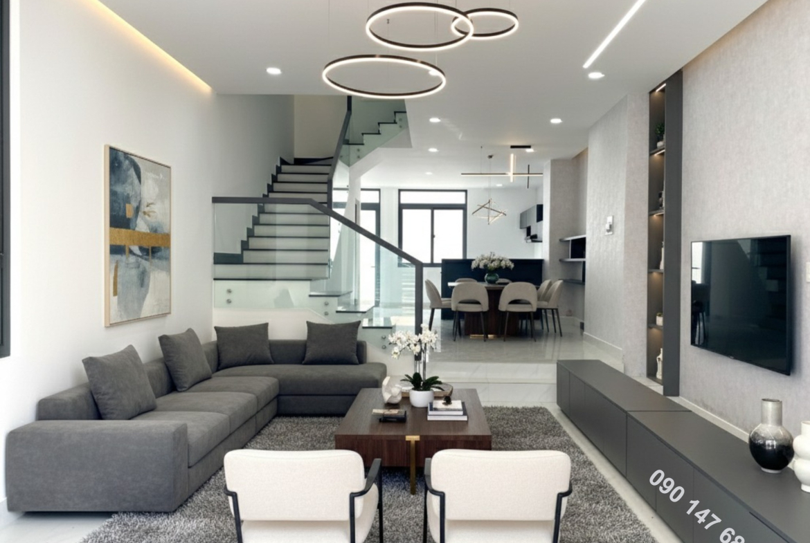 Thiết kế: Hiện đại, sang trọng, đón ánh sáng tự nhiên toàn bộ ngôi nhà.