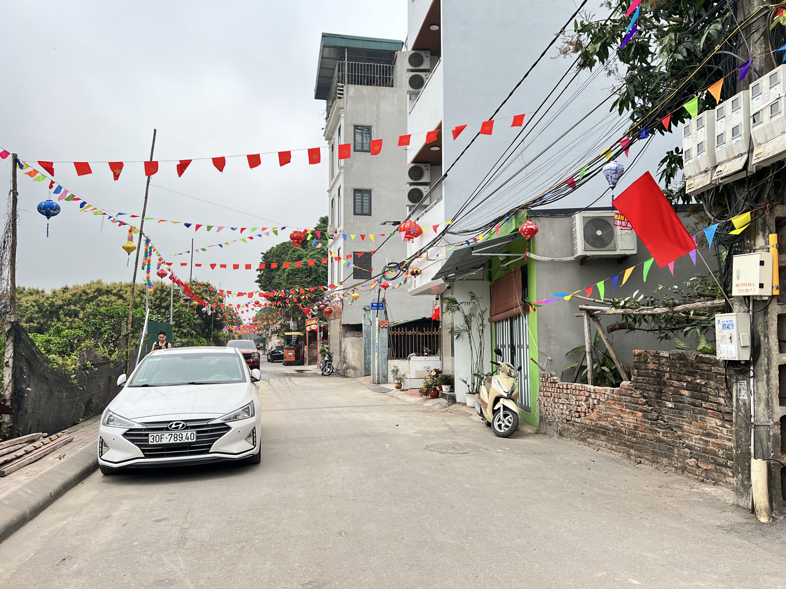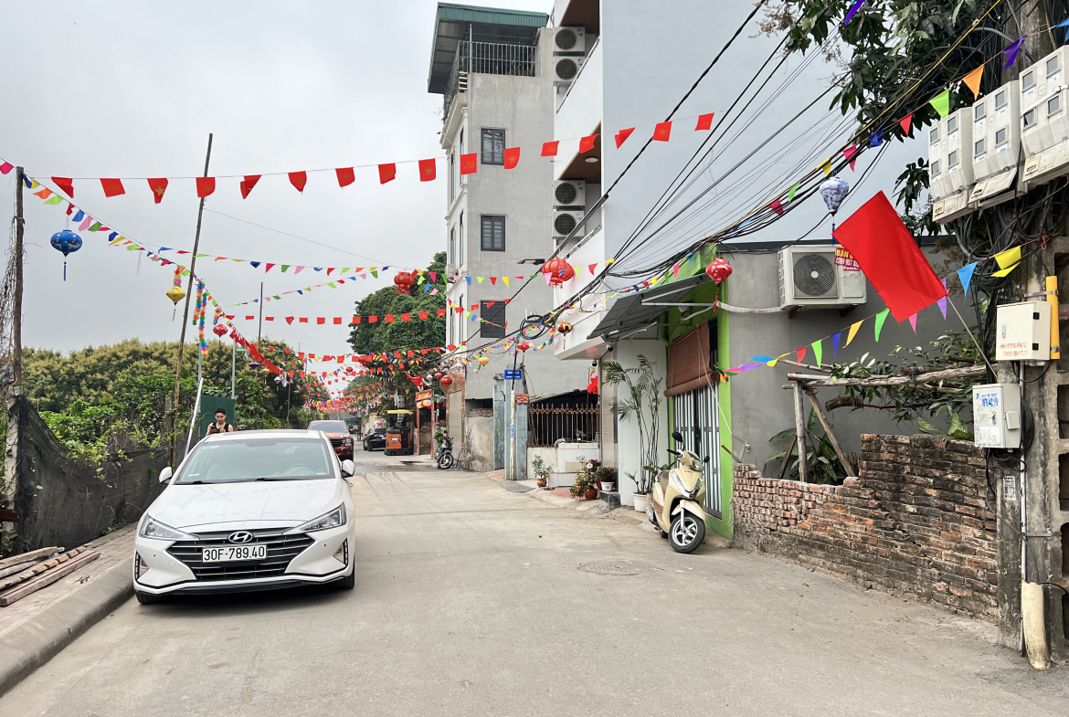 Ngõ trước nhà nông, rộng, ô tô đỗ cửa, quay đầu gần nhà