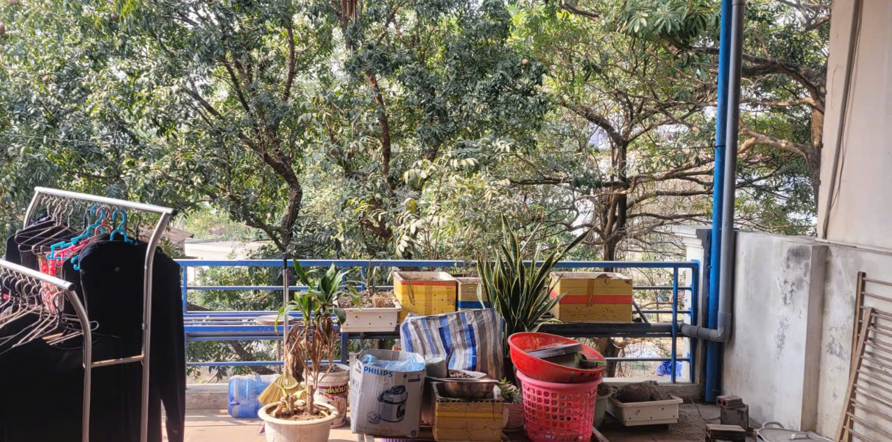 + Nhà lô góc sáng thoáng: Trước mặt hàng cây cổ thụ xanh mát lối vào kho vật tư, bên cạnh ngõ nhà riêng biệt phòng nào cũng mở của sổ.