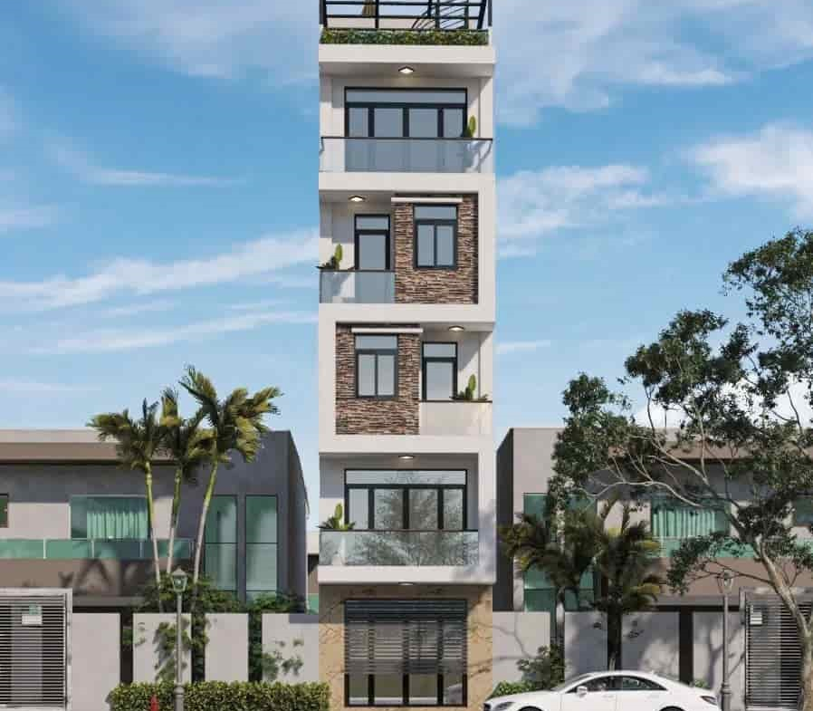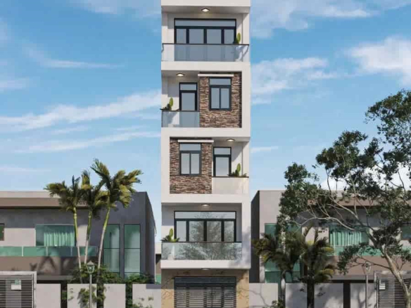 Nhà 6 tầng, tầng 2-5: 2 phòng ngủ, 2 WC, tầng 6: Phòng thờ + sân phơi.