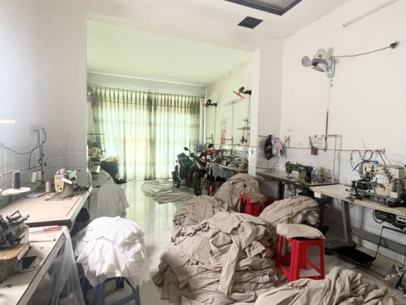 + Kết cấu: 1 trệt, 1 lầu, sân thượng. Gồm mặt tiền kinh doanh, 2PN, 2WC. Hiện đang cho thuê làm xưởng may.