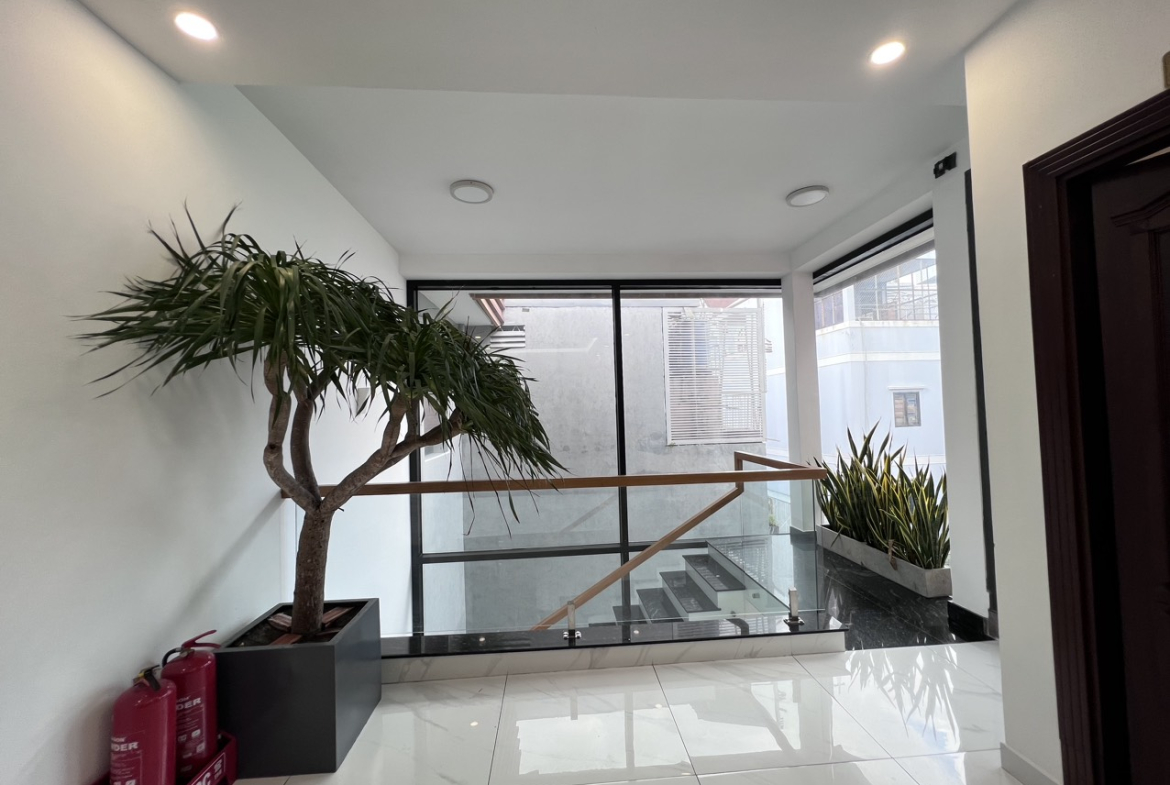 Kết cấu: 1 trệt, 4 lầu – nhà xây chắc chắn, còn sử dụng tốt
