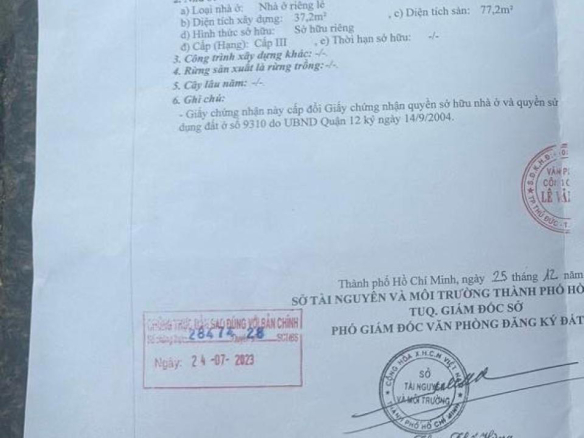 Diện tích 40m2, DT sàn 77.2m2, ngang 4mx10m, Đ. 7m, 25m ra Đ. Thạnh Xuân 25