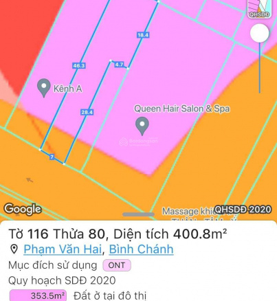 Ngang 7x50m (NH 12m) diện tích công nhận 342m² thổ cư.