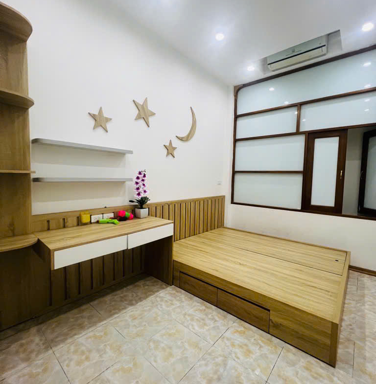 -Thiết kế tầng 2 phòng cầu thang và wc giữa, phòng nào cũng có ban công, cửa sổ thông thoáng sáng. Tổng 6 ngủ, tầng 5 còn có sân chơi, lẩu nướng cafe chill chill.,