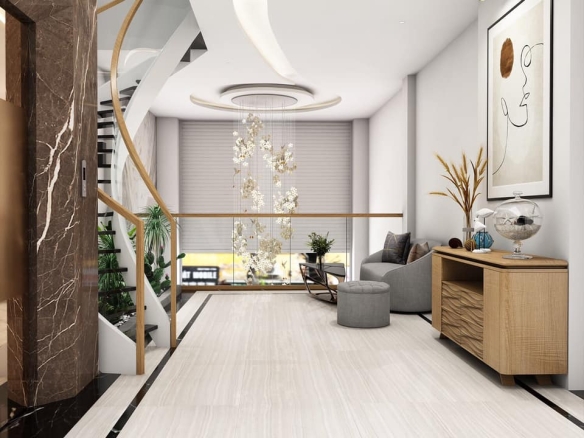 + Tầng 1 thông sàn, gara oto,…