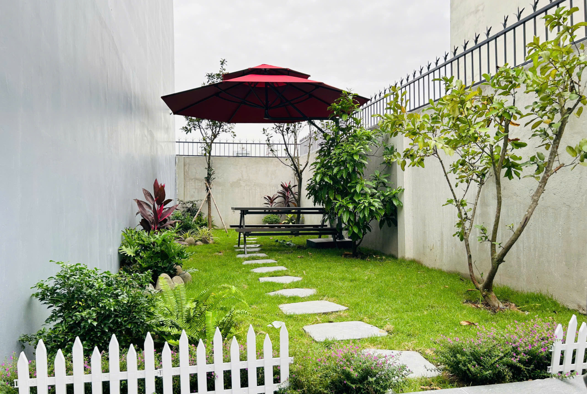 Công năng gồm phòng khách, bếp, 4 phòng ngủ, 5 WC, phòng thờ, sân vườn thoáng mát